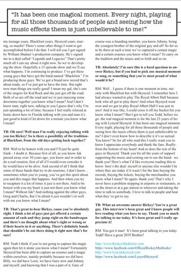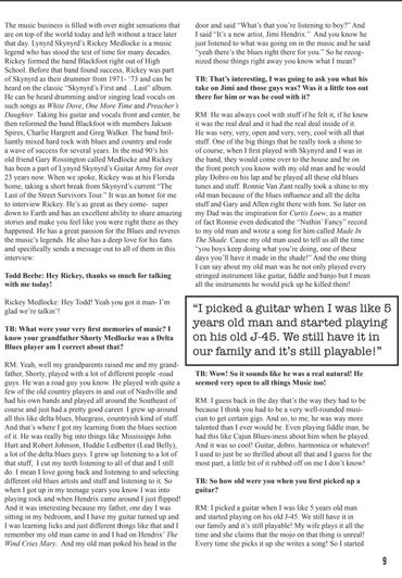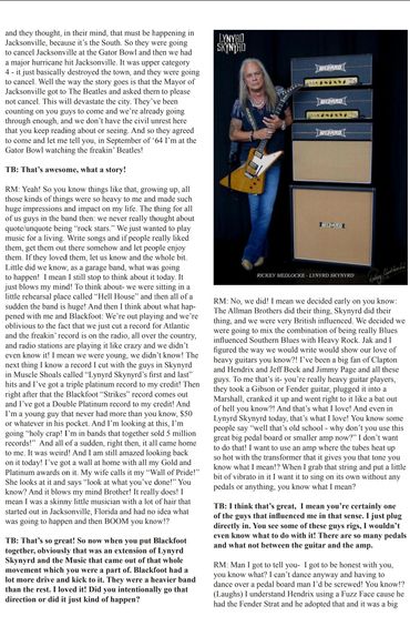 Lynyrd Skynyrd. They are an iconic American Rock and Roll band on every level. So many of us grew up with their songs, and I have used those songs as reference and learning points for all of my students though the years. It was an honor for me to speak with the great Rickey Medlocke from Skynyrd and Blackfoot just before Christmas last month. The interview is featured in the current issue of Buddy Guy's Legends "BG Blues and Music News" Bluesletter. Being in this business all these years, I've been around pretty much everyone and anyone. Especially during my time out with B.B., I was very fortunate to rub shoulders with some big names. I've seen people with not much credit to their name strut around with huge heads like they're some kind of Rock Gods, and I've seen people with WAY more credit to their names be extremely down to Earth. So it's so refreshing when you speak with someone like Rickey Medlocke and find out he truly is Salt of the Earth. Rickey has more credits to his name than so many out there, yet he is one of the most down to Earth, laid back guys I've met, and he has nothing but love for his fans and everyone that loves him and his Music. He's a true American Music Legend. Click on the images below and read away!! Thanks for the great interview Rickey! It was great to talk to you.